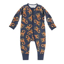 Craquez pour ce pyjama garçon pour proposé par la marque DIM ! Coloris : Bleu Manches longues Zip sur la longueur Protections aux mains et des pieds jusqu'à 12 mois Imprimé girafes Composition : 100% Coton bio