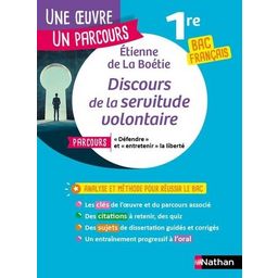 Toutes les ressources de l'oeuvre d'Etienne de La Boétie, Discours de la servitude volontaire. Une oeuvre qui questionne les mécanismes de la domination. Sous forme de fiches en couleurs, il propose : - Repères sur l'auteur et le contexte historique de l'oeuvre - Résumés de textes et des repères dans l'oeuvre - Thèmes expliqués et commentaires linéaires - Le parcours associé explicité - Astuces pour comprendre et réviser vite et efficacement - Exemples de dissertations corrigées et expliquées pas à pas - Explications de texte complémentaires et guide pour l'entretien à l'oral - Citations incontournables à retenir et quiz de révision