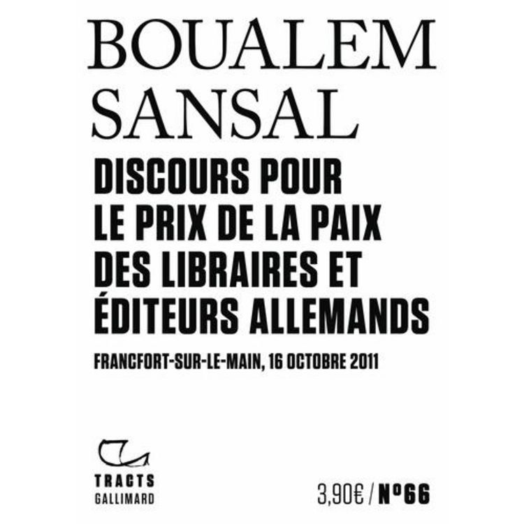 DISCOURS POUR LE PRIX DE LA PAIX DES LIBRAIRES ET EDITEURS ALLEMANDS. FRANCFORT-SUR-LE-MAIN, 16 OCTOBRE 2011, Sansal Boualem