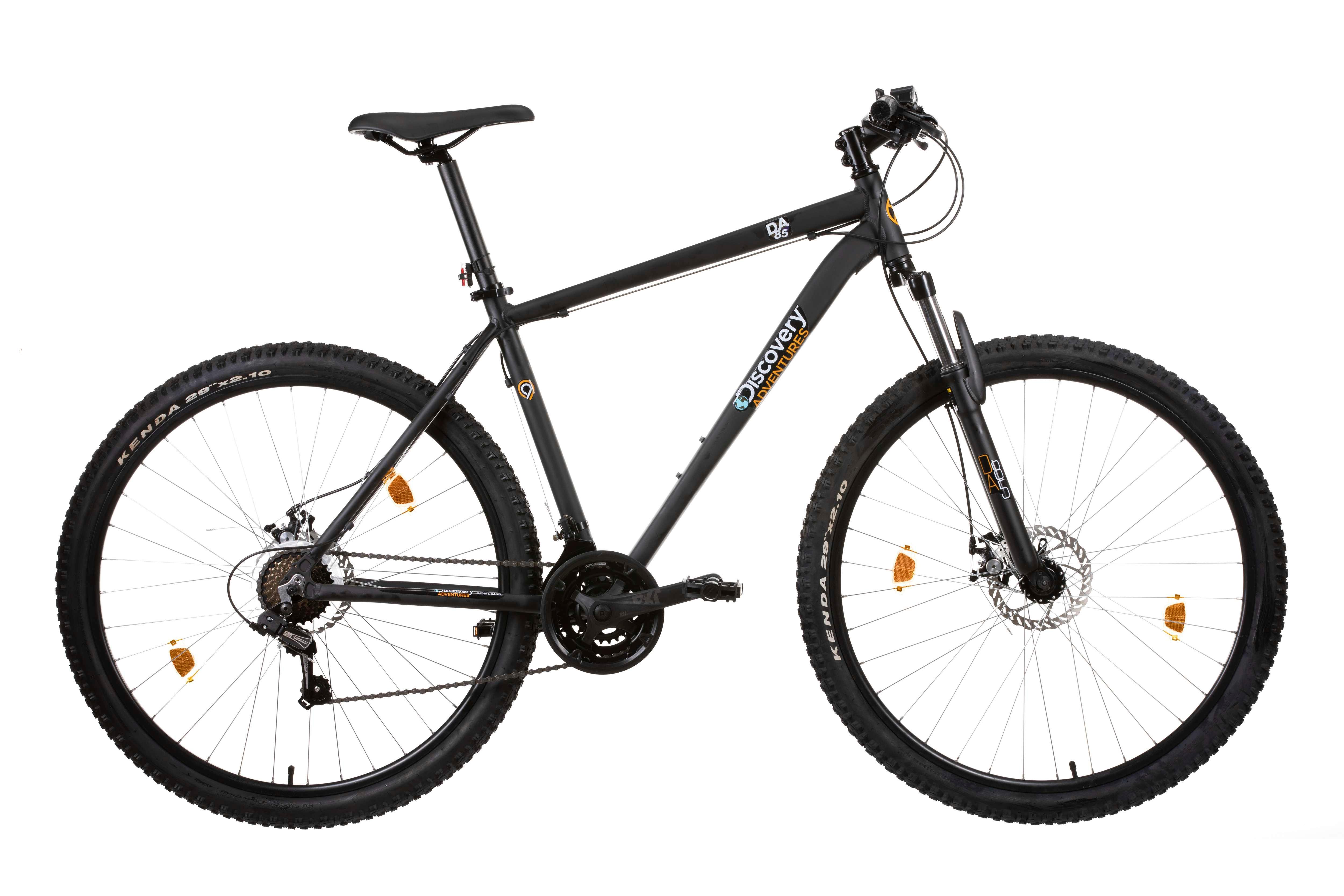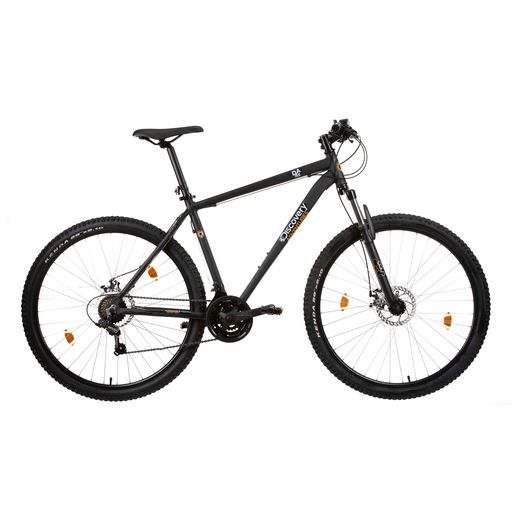 En savoir +VTT 29'' Homme Discovery Adventures - Cadre alu rigide - Fourche télescopique - 21 Vitesses par poignées à gâchettes - Roue libre 7 vitesses Shimano - Dérailleur arrière Shimano TY300 - Potence Headset - Frein avant et arrière à disque - Leviers de freins en aluminium - Jantes aluminium double parois avec attache rapide avant & pneus noirs - Sonnette - Eclairage à piles fournies.