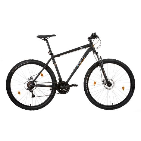 VTT 29'' Homme Discovery Adventures - Cadre alu rigide - Fourche télescopique - 21 Vitesses par poignées à gâchettes - Roue libre 7 vitesses Shimano - Dérailleur arrière Shimano TY300 - Potence Headset - Frein avant et arrière à disque - Leviers de freins en aluminium - Jantes aluminium double paroi