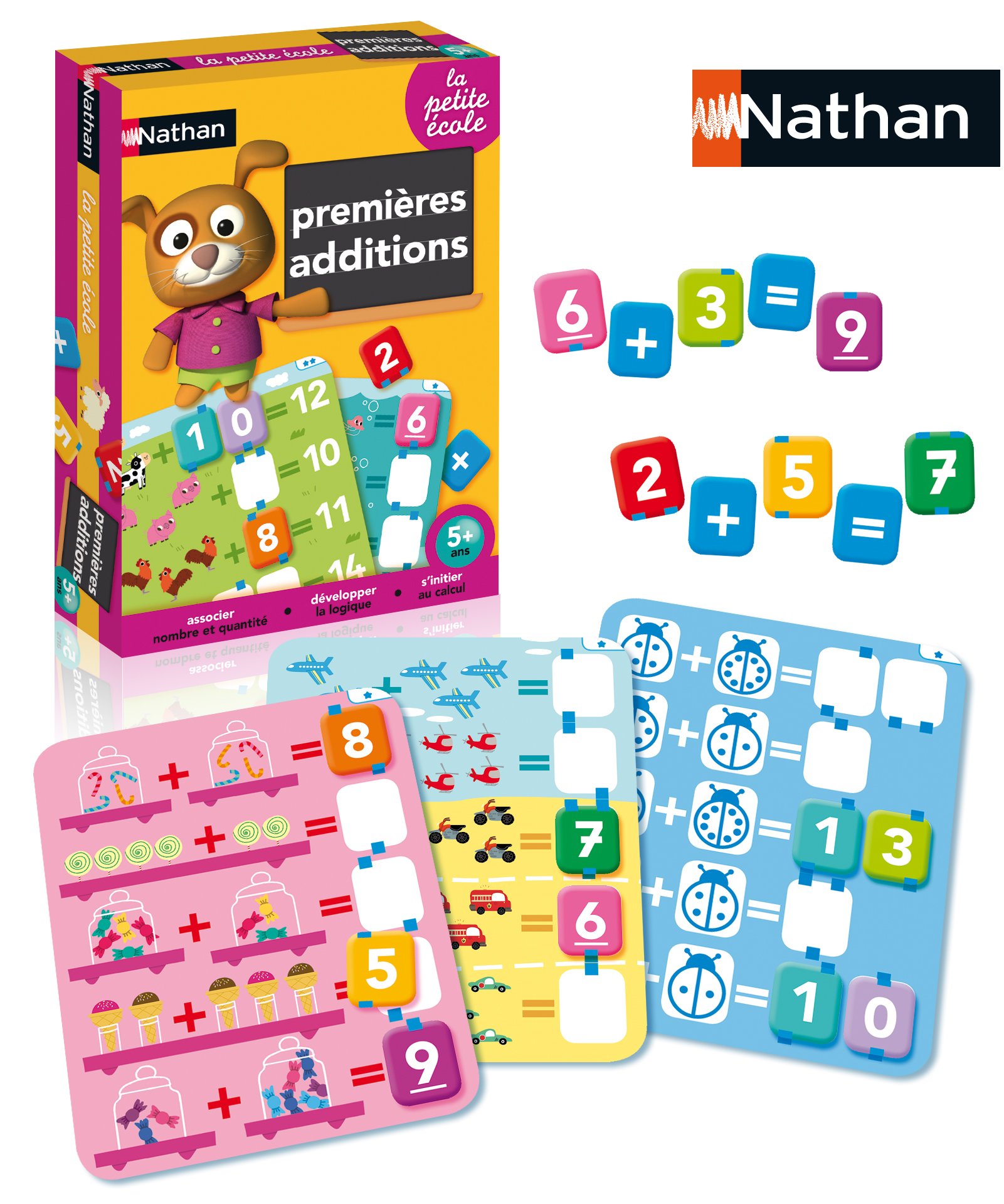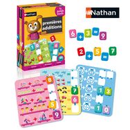 Avec les Premières Additions de Nathan, l'enfant apprend à calculer en comptant les animaux et les objets et en retrouvant les chiffres manquants sur les plaquettes illustrées !