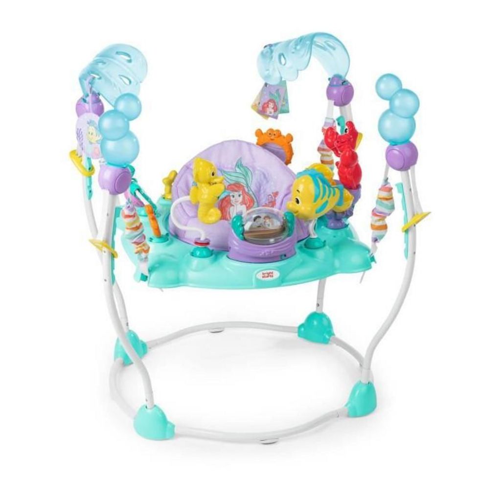 En savoir +Aire d'activités Disney Princesse Ariel. Votre bébé saute de joie en profitant des 10 jouets amovibles et activités. Lumieres et sons, plus de 20 mélodies. Le siege matelassé pivote a 360 degrés. 4 hauteurs possibles. Jusqu'a 12 kg. Housse de siege facile a nettoyer. Fonctionne avec 6 piles AA. 86,6 x 77.5 x 82.5cm