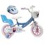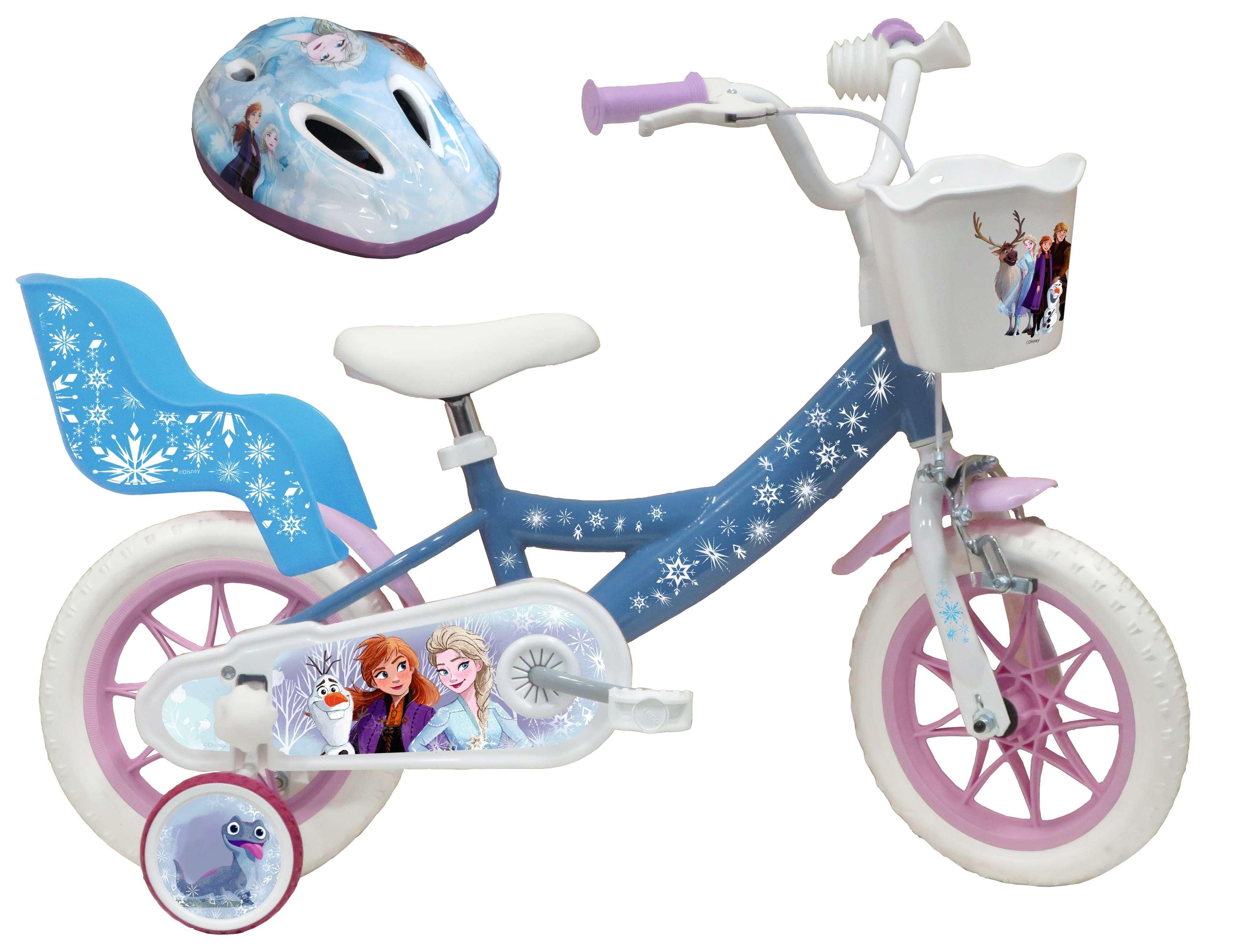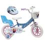 Vélo enfant 12'' - Modèle Reine des neiges + Casque - Idéal pour enfant de 85 à 100 cm - Livré avec stabilisateurs - 1 Frein - Panier avant - Porte poupée arrière et roues à bâtons