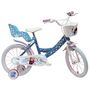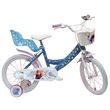 Vélo enfant 16'' Fille - Modèle Reine des neiges pour taille de 105 à 120 cm - Stabilisateurs - Panier avant - Porte poupée arrière - 2 freins & Pneus gonflables