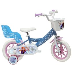 Vélo enfnat - Modèle 12'' Reine des neiges pour enfant de 85/100 cm avec stabilisateurs - 1 Frein - Panier avant - Porte poupée arrière et roues batons