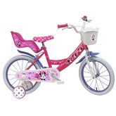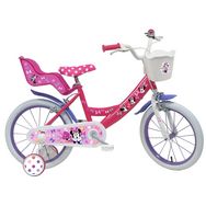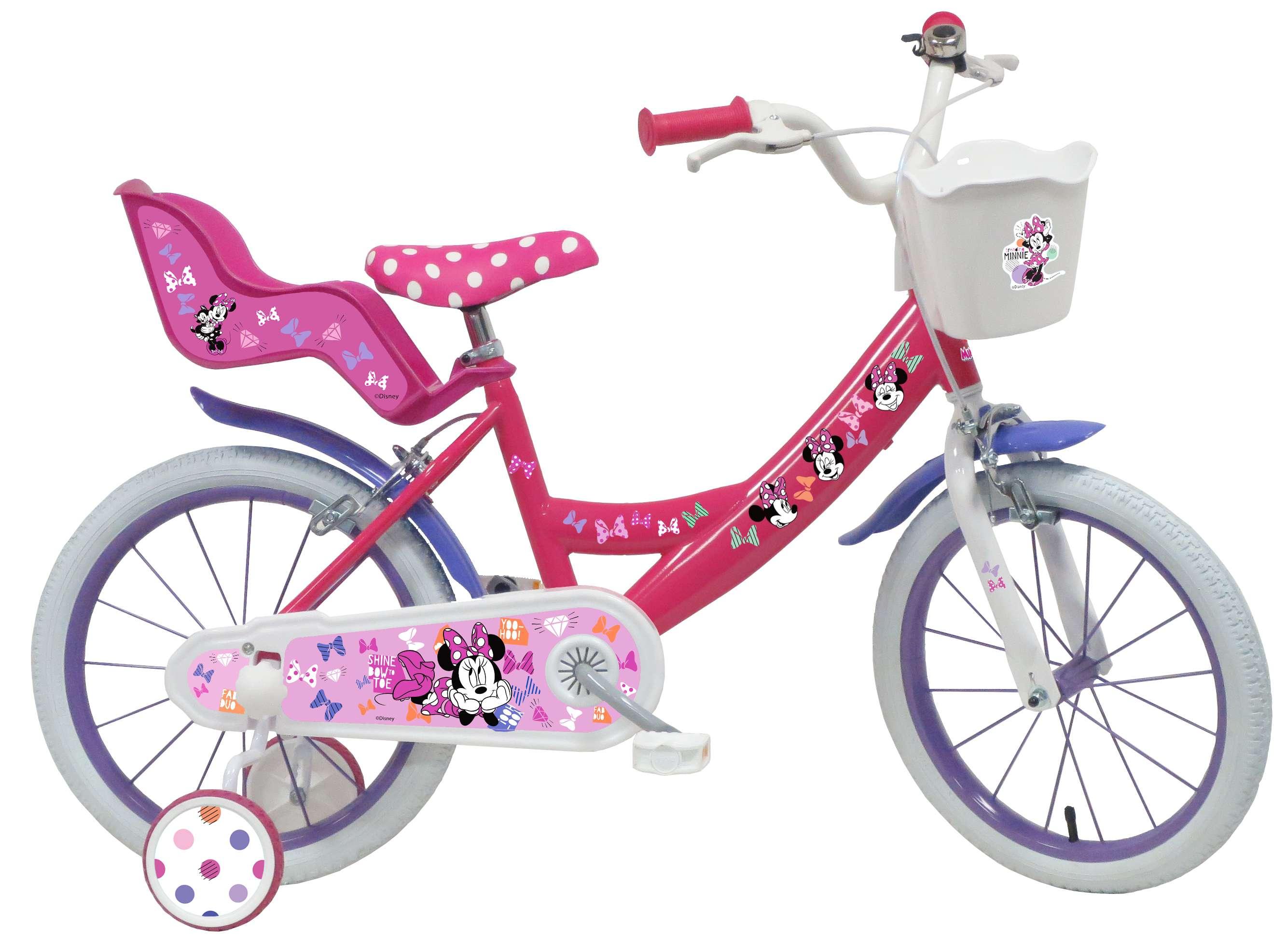 Vélo enfant - Modèle 16'' Minnie de Disney pour enfant de 105/120 cm avec stabilisateurs - Panier avant - Porte poupée arrière - 2 freins et pneus gonflables