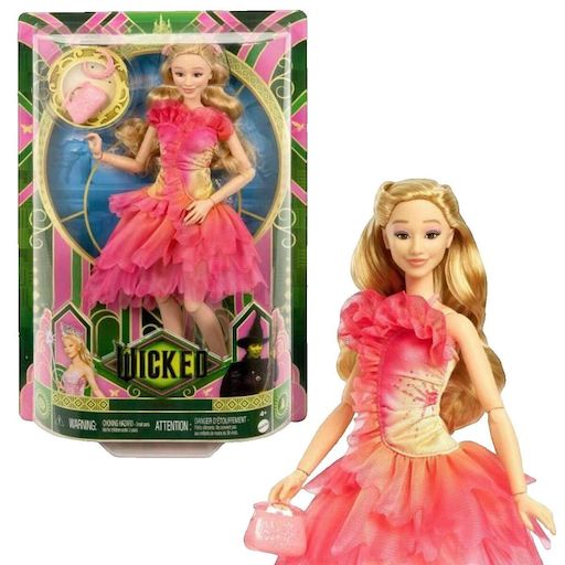 Découvrez la poupée Glinda de Disney, inspirée du film Wicked. Cette poupée présente des cheveux blonds et une robe à volants dégradés de rose. Elle est fournie avec 4 accessoires inclus. Cette poupée flexible dispose d'articulations au niveau du torse, des coudes, des poignets et des genoux pour pe