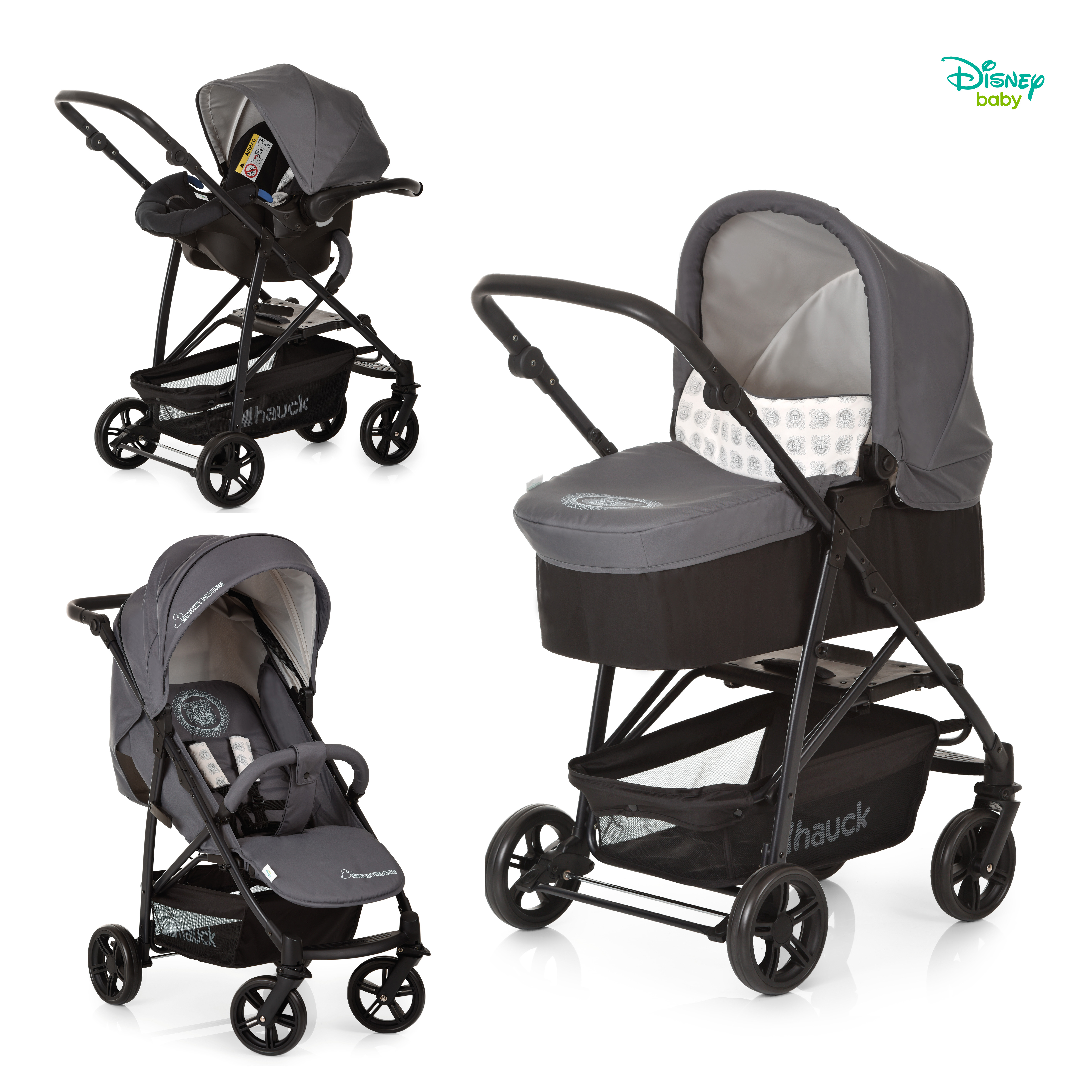 La poussette combinée trio Rapid 4X Plus de Hauck à l'effigie de Mickey Mouse va vous plaire ! Ce combiné est utltra complet composé d'une poussette compacte, d'une nacelle et d'un siège auto groupe 0. Combinez la nacelle et le cadre de conduite, vous obtiendrez un landau câlin pour votre nouveau né. Vous pouvez également utiliser le siège-auto compatible isofix dès la naissance. La protection brevetée contre les chocs latéraux permet de garantir dans le véhicule une conduite sûre à chaque instant. Il est alors possible de fixer le siège avec la ceinture de conduite 3 points ou avec la base isofix (non inclus). Fixez le siège-auto sur le cadre de conduite. Vous obtiendrez la solution Shop'n Drive simple et manœuvrable pour les sorties. Le siège confortable de la poussette rembourré invite, avec une position allongée et un repose-pieds réglable, à faire une petite sieste même en déplacement.