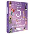 5 minutes de lecture chaque soir avant de s'endormir avec les Princesses Disney ! Un recueil d'histoires pour le plus grand bonheur des petits et grands ! Découvrez 12 histoires aux textes concis et richement illustrés pour un temps de lecture de 5 minutes par histoire. Un recueil à lire à son enfant pour l'accompagner au pays des rêves ou pour l'encourager au plaisir de la lecture autonome. Dès 4 ans. Contient les histoires : Ariel - Un très gros bébé ! , Jasmine - Bienvenue à la maison ! , Aurore - Pièges en forêt , Pocahontas - La migration hivernale , Belle - L'incroyable expédition , Mulan - Le théâtre d'ombres , Blanche-Neige - Le Puits aux Souhaits , Tiana - Le jardin potager , Cendrillon - Le ballet-surprise , Vaiana - Le festival des cerfs-volants , Merida - Un défi à relever , Raiponce - Les amis de la forêt.