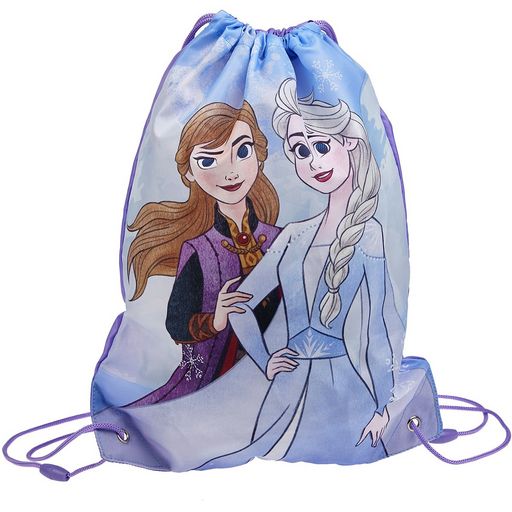 Ce sac à dos pliable bleu à cordon La Reine des neiges affiche une palette de couleurs tendres et un joli motif placé à l'effigie d’Elsa et Anna les princesses du royaume d’Arendelle. Avec sa confection en toile légère et son cordon coulissant assorti, ce sac se ferme en un clin d’