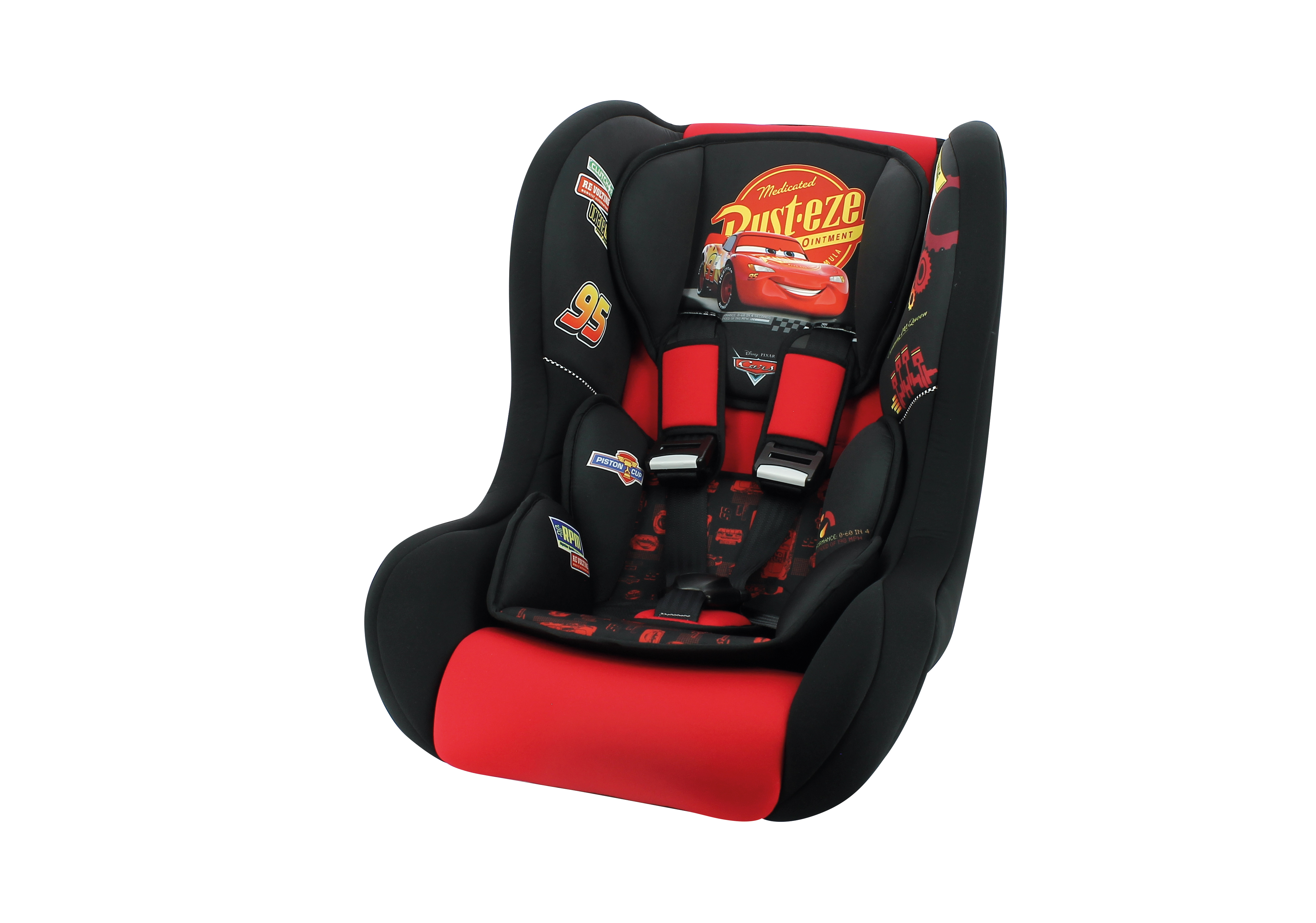 Faites voyager votre enfant en compagnie de Flash McQueen en voiture ! Le siège auto groupe 0/1/2 Trio Disney Cars accompagnera votre enfants pendant ses trajets en voiture de la naissance et jusque 25 kg (5/6 ans environ). Fabriqué et testé en France, ce siège auto est homologué selon la norme ECE R44/04 pour vous garantir un maximum de sécurité. Facile à installer et ultra léger, le siège auto Trio Cars se fixe à l'aide de la ceinture de sécurité du véhicule. Il se positionne dos à la route de 0 à 10 kg puis face à la route avec harnais de 9 à 18 kg, et enfin face à la route sans harnais de 15 à 25 kg. Il est équipé d'un harnais 5 points avec double réglage à l'épaule et d'une protection latérale en cas de chocs.