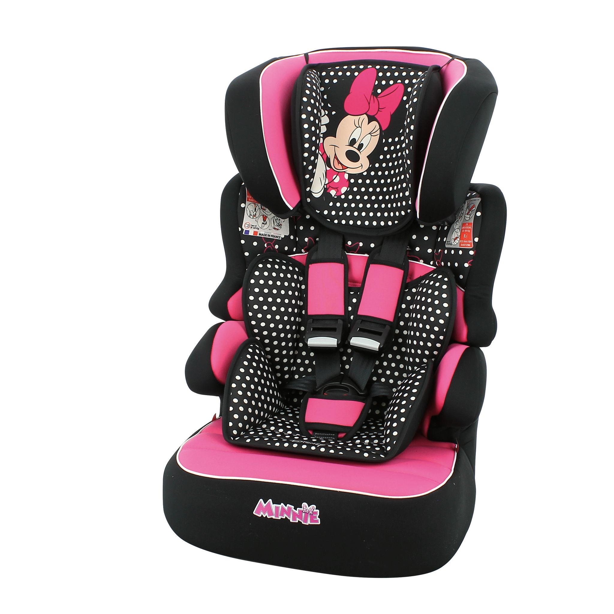 Votre enfant adorera voyager en voiture en compagnie de Minnie dans ce siège auto groupe 1/2/3 Beline Disney. Ultra sécuritaire et confortable, ce siège auto Beline Disney est équipé d'une têtière réglable en hauteur pour s'adapter à la croissance de votre enfant. Avec ses protections latérales, votre enfant sera bien protégé en cas de chocs latéraux. Le siège auto Beline Disney Minnie est équipé d'un harnais 5 points avec double réglage à l'épaule utilisable de 9 à 18 kg, puis le harnais peut se retirer à partir des 15 kg et le siège devient un rehausseur avec dossier sans harnais jusque 36 kg. Un siège auto évolutif à l'effigie du personnage préféré de votre enfant !