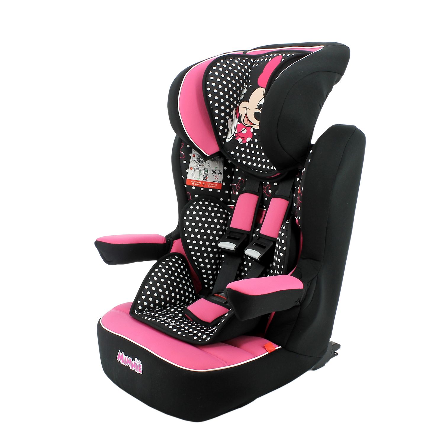 Pour vos trajets en voiture accompagné de Minnie, optez pour ce siège auto isofix groupe 1/2/3 Imax Disney Minnie. Utilisable de 9 à 34 kg, soit de 2 ans environ à 10 ans, ce siège auto accompagnera votre enfant jusqu'à ce qu'il n'ai plus besoin de rehausseur. Évolutif, il s'utilise jusque 15 kg avec le harnais de sécurité 5 points avec double réglage à l'épaule et à partir de 15 kg vous pourrez l'utiliser en rehausseur avec dossier. Le siège auto isofix Imax Disney Minnie se fixe grâce aux ancrages Isofix de votre véhicule pou rune sécurité optimale et une installation plus simple. Les accoudoirs relevables du siège vous permettront d'installer votre enfant plus facilement.
