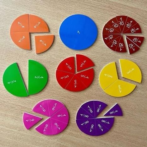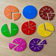 Des kits pour apprendre les fractions ! Du matériel individuel à manipuler par l'élève, pour travailler les fractions (nouvelle notion du programme 2025 cycle 2), avec : 4 kits de 39 pièces chacun. Fractions 1/10, 1/8, 1/6, 1/5, 1/4, 1/3, 1/2 et 1/1. Recto : avec indication de la fraction , verso :