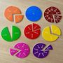 Des kits pour apprendre les fractions ! Du matériel individuel à manipuler par l'élève, pour travailler les fractions (nouvelle notion du programme 2025 cycle 2), avec : 4 kits de 39 pièces chacun. Fractions 1/10, 1/8, 1/6, 1/5, 1/4, 1/3, 1/2 et 1/1. Recto : avec indication de la fraction , verso : sans. 1 couleur par fraction, diamètre 9 cm. Les couleurs de Vivre les maths et Tandem CE !
