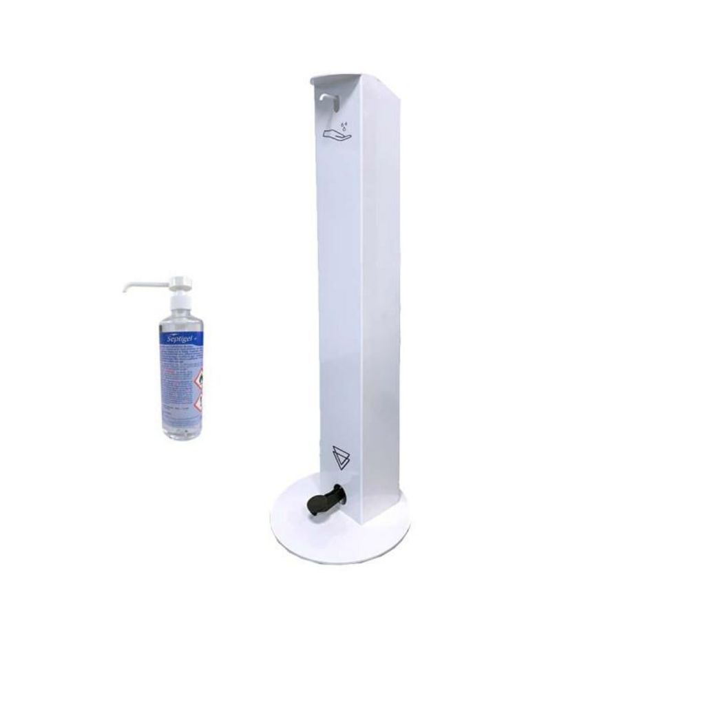 Distributeur sans contact OCCIGEL gel hydroalcoolique - Blanc, produit conçu et fabriqué en France afin de répondre au plus vite à votre besoin ! permet de se désinfecter les mains sans contact.