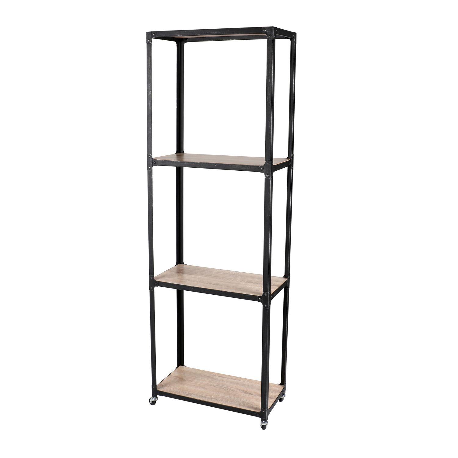 Elégante et raffinée, cette bibliothèque sera parfaite pour ranger et disposer vos livres sur ses quatre étagères. Son design industriel au mélange de matière apportera du caractère à votre pièce. Equipée de roulettes, vous pourrez la déplacer selon vos envies.