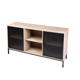 Ce buffet est un meuble de rangement élégant qui apporte une touche de style industriel à votre intérieur. Doté de deux portes en grillage noir et d'étagères couleur bois, ce buffet de dimensions généreuses offre un espace de rangement polyvalent et un look industriel tendance.Les portes du buffet s