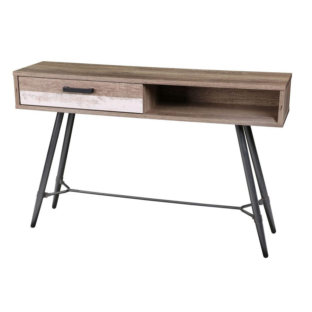 Cette console avec tiroir trouvera facilement sa place dans une chambre, dans une entrée ou dans un salon. Laissez-vous séduire par le charme de son design et par sa teinte douce qui s'intégrera à tous les styles d'intérieur. FICHE TECHNIQUE- Console en MDF.- Pieds de la console en métal.- Equipée d