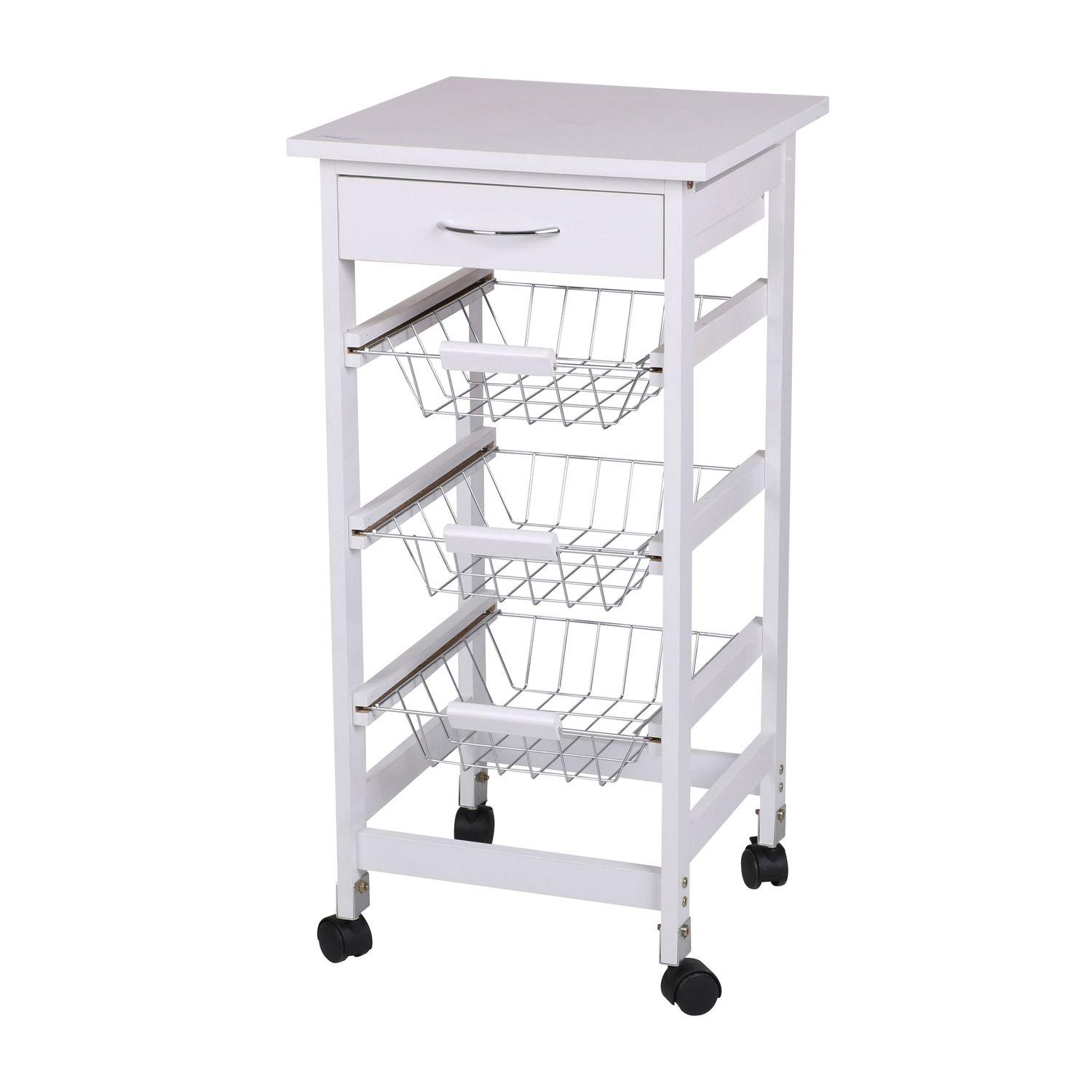 Desserte à roulettes avec 1 tiroirs et 3 paniers - H. 76 cm - Blanc