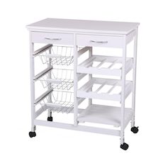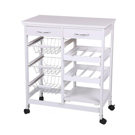 Vous ne manquerez plus d'espace de rangement avec cette desserte à roulette. Sobre et ultra-pratique à déplacer, elle s'intégrera parfaitement dans votre cuisine sans perte de place. Profitez de ses nombreux rangements pour organiser votre cuisine comme bon vous semble !