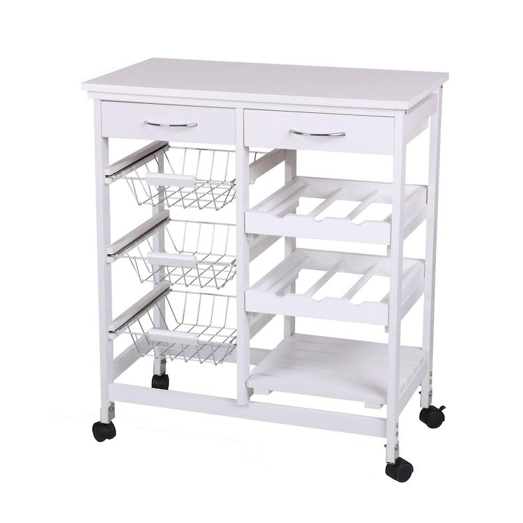 Desserte à roulettes avec 2 tiroirs ert de multiples rangements