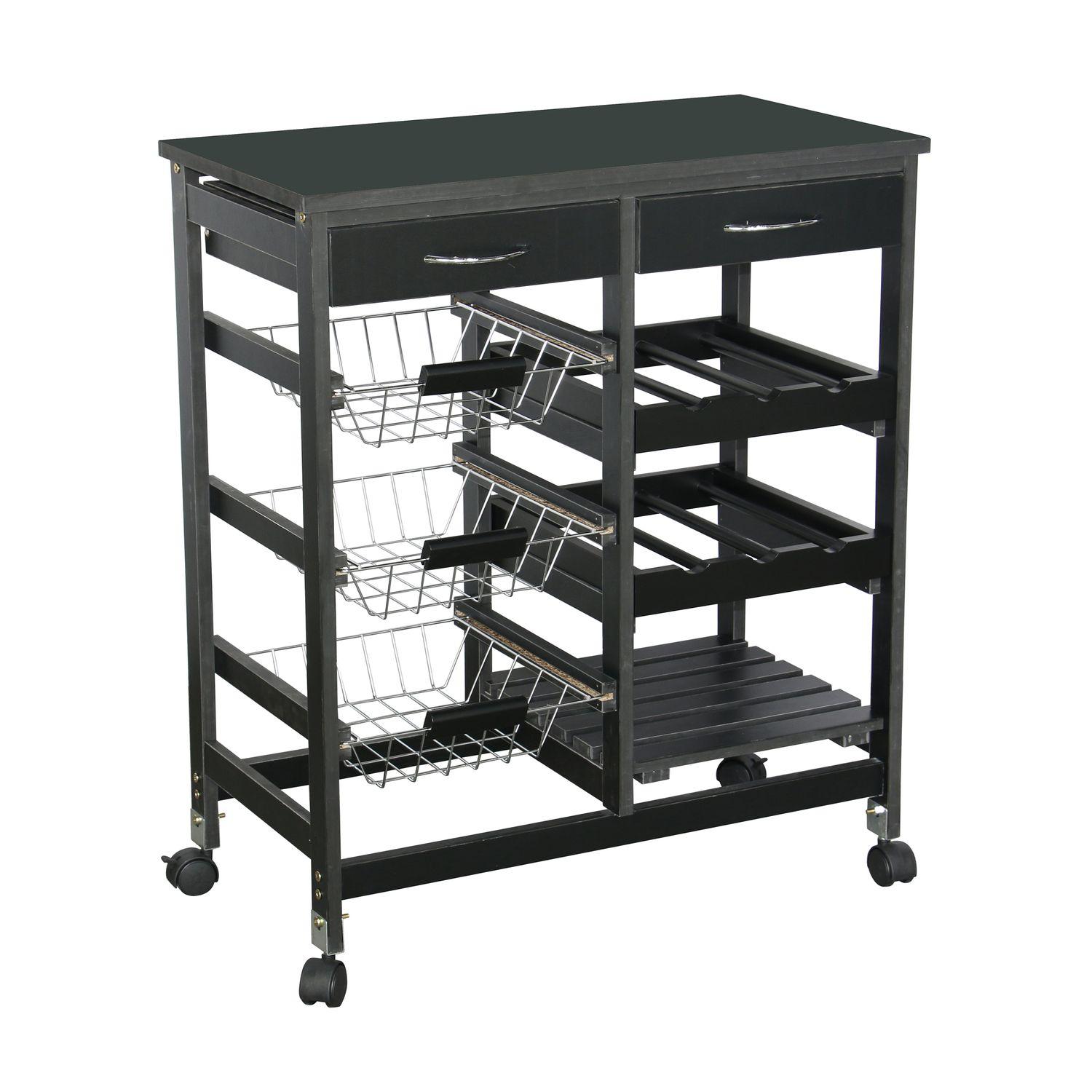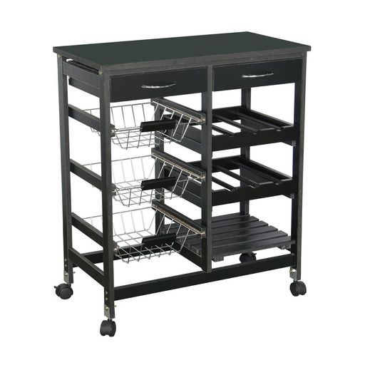 Desserte à roulettes avec 2 tiroirs et de multiples rangements - H. 76 cm - Noir