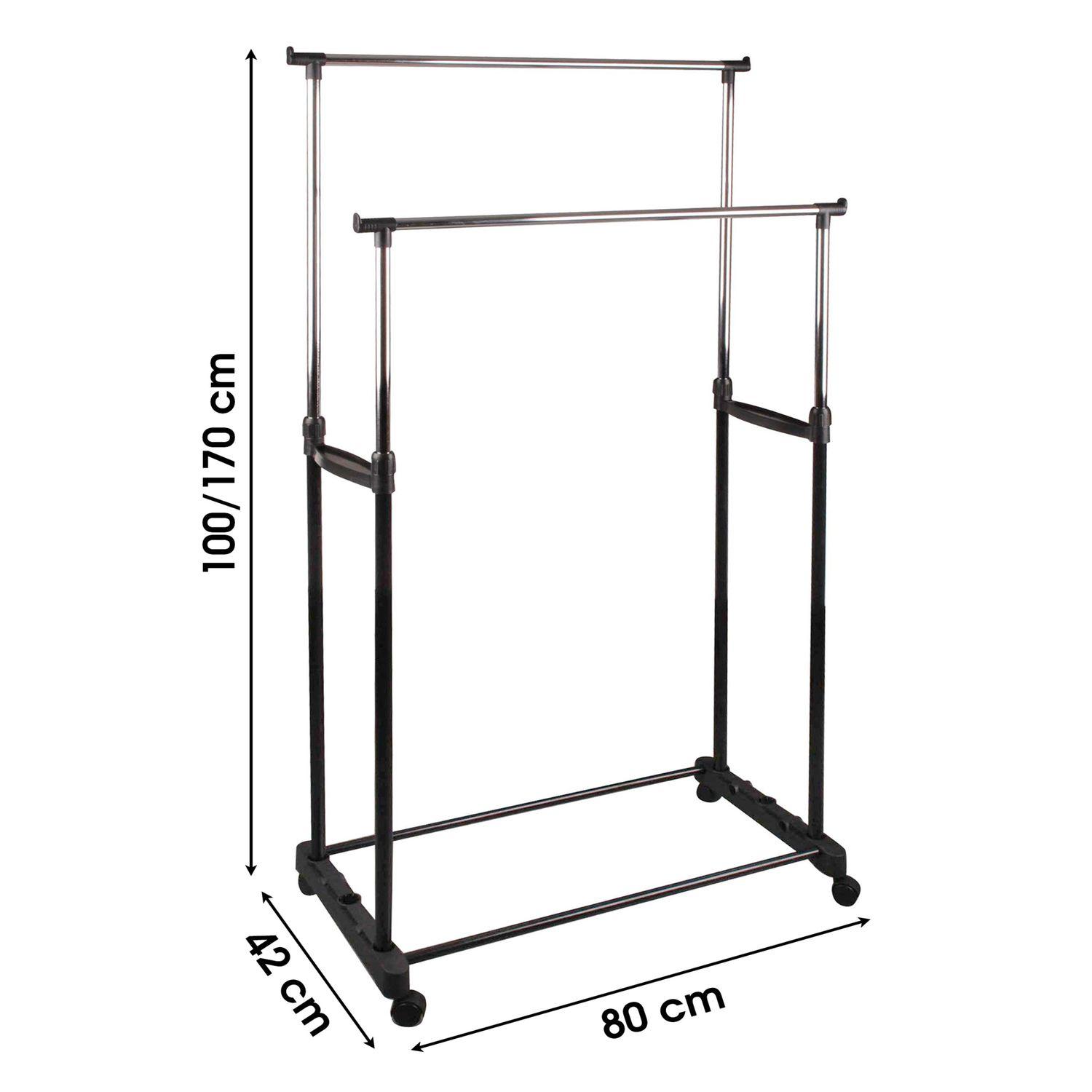 Par sa fonctionnalité et sa structure extensible, ce double portant pour vêtements révolutionnera votre chambre. A roulettes, vous pourrez le déplacer facilement et le mettre là où vous le voulez.