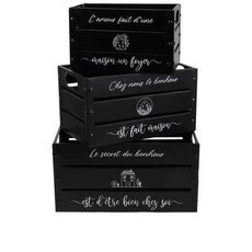 Apportez une esthétique industrielle à votre espace avec notre ensemble de caisses métalliques. Ces caisses noires et décorées, de trois tailles différentes, offrent un rangement stylé et polyvalent pour votre intérieur.
