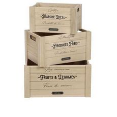 Ajoutez une touche rustique et fonctionnelle à votre espace avec notre ensemble de caisses rectangulaires. Fabriquées en bois, ces caisses offrent un rangement polyvalent tout en apportant un style champêtre à votre intérieur.FICHE TECHNIQUE- Lot de 3 caisses de rangement- Matière : Bois- Détails :