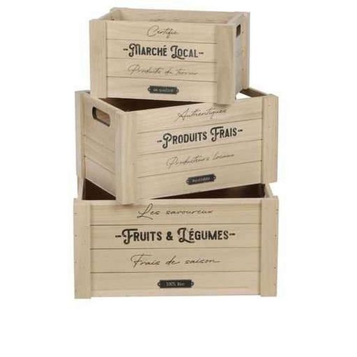 Lot de 3 caisses rectangulaires en bois décoré - Beige