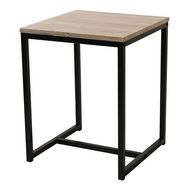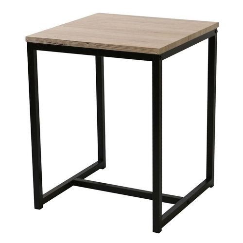 Voilà une jolie table d'appoint qui trouvera facilement sa place dans votre intérieur ! Dans votre salon ou dans votre chambre, elle apportera une touche de caractère avec son design industriel au mélange de matière.FICHE TECHNIQUE- Plateau en polybutène et polyuréthane imitation bois.- Pieds en aci