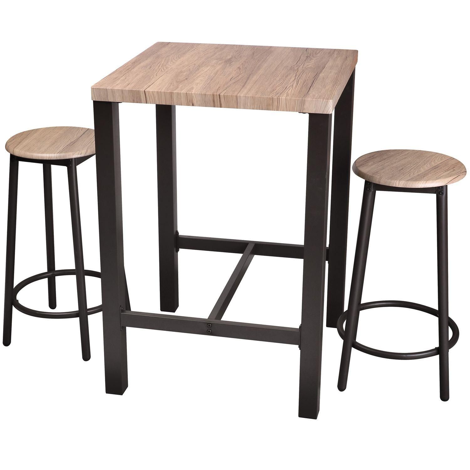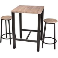 Décorez votre salle à manger de manière industrielle grâce à cette table bar alliant fonctionnalité et esthétisme. Idéale pour les petits espaces, elle offre un gain de place optimal.FICHE TECHNIQUE- Structure de la table et des chaises en métal.- Assise et plateau en MDF recouverts d'une feuille en