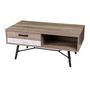 Sobre et épurée, cette table basse saura vous séduire par son design et par sa teinte douce qui s'adaptera à tous les intérieur. Un tiroir et une case accueilleront télécommandes et magazines. FICHE TECHNIQUE- Table basse en MDF.- Pieds de la table basse en métal.- Equipée d'un tiroir et d'une case