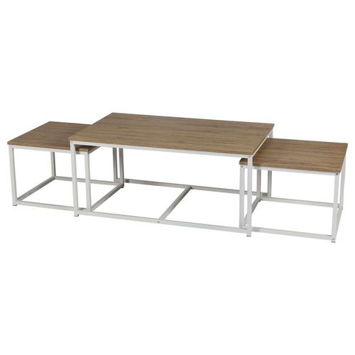 Trio de tables basses La Casa Blanca en bois et métal - Marron et blanc