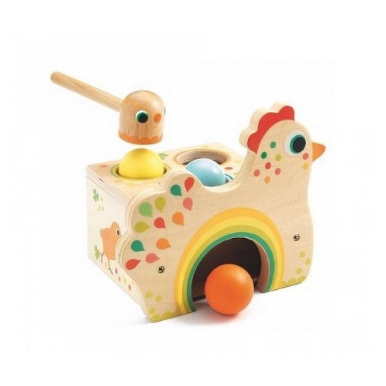 Découvrez Tapatou de Djeco, un jeu de tap tap en bois pour les enfants dès 18 mois. Représentant une jolie poule, ce jouet d'éveil en bois pour les filles et les garçons donne l'impression que Madame poule pond un oeuf lorsque les boules en bois tombent dans la boite.. Votre enfant va s'amuser à tap