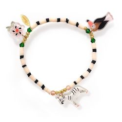 Le bracelet Jemma est une invitation à l'aventure avec son design inspiré de la jungle. Orné de perles en acrylique et de trois charms, un zèbre, une fleur et un toucan, il apporte une touche exotique et colorée à votre poignet. Son double fil élastique assure une solidité optimale tout en garantissant un enfilage facile, sans fermoir.