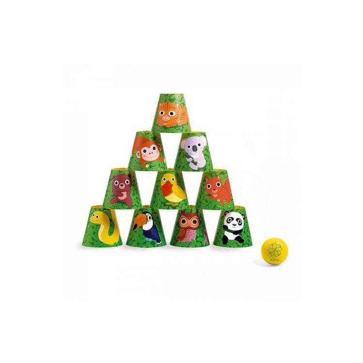 Ce jeu sera parfait pour occuper un anniversaire ou une journée entre copains ! Ce jeu de chamboule tout dans l'univers des animaux est composé d'une balle en plastique souple qu'il faudra lancer sur 10 animaux Attention à bien viser pour ne pas rater ton coup ! Les cônes forment une grande pyramide (38 x 41 cm). Le jeu terminé, les cônes emboîtés les uns dans les autres tiennent peu de place (14 x 10 cm).