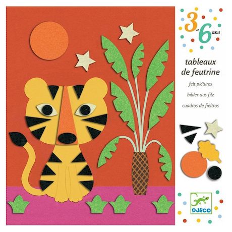 Des pièces de feutrine prédécoupées et autocollantes à utiliser comme des gommettes. Une activité de manipulation qui développe la dextérité. Contient 4 planches illustrées 200x200mm, 114 gommettes de feutrine autocollante, 5 couleurs différentes de feutrine, 1 livret pas à pas en couleurs. De 3 à 6 ans. Ref DJ09864
