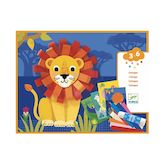 Coffret Collages avec des bouclettes de la marque Djeco pour les enfants de 3 à 6 ans. Avec ce coffret créatif, votre enfant réalisera 4 tableaux sur le thème des animaux. En pliant et collant les bandes de feutrine colorées, votre enfant réalisera une jolie crinière au lion, un beau plumage pour le