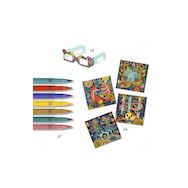 Découvrez le coffret coloriage 3D forêt fantastique de Djeco, un atelier créatif original et ludique avec des feutres pinceaux et des lunettes 3D pour les enfants à partir de 7 ans. Une activité de coloriage sur le thème des animaux de la forêt au résultat stupéfiant! Votre enfant va suivre les indications de l'artiste pour mettre en couleurs les 4 tableaux proposés puis va chausser ses lunettes 3D pour voir les illustrations prendre vie. Une manière ludique d'appréhender les notions de couleurs chaudes et froides . Le coffret contient 4 tableaux à colorier, 7 feutres pinceaux, une paire de lunettes 3D et un livret explicatif pas à pas en couleurs. Un loisir créatif ludique et amusant pour les enfants. Dimensions du coffret : 23,5 x 23 x 4 cm