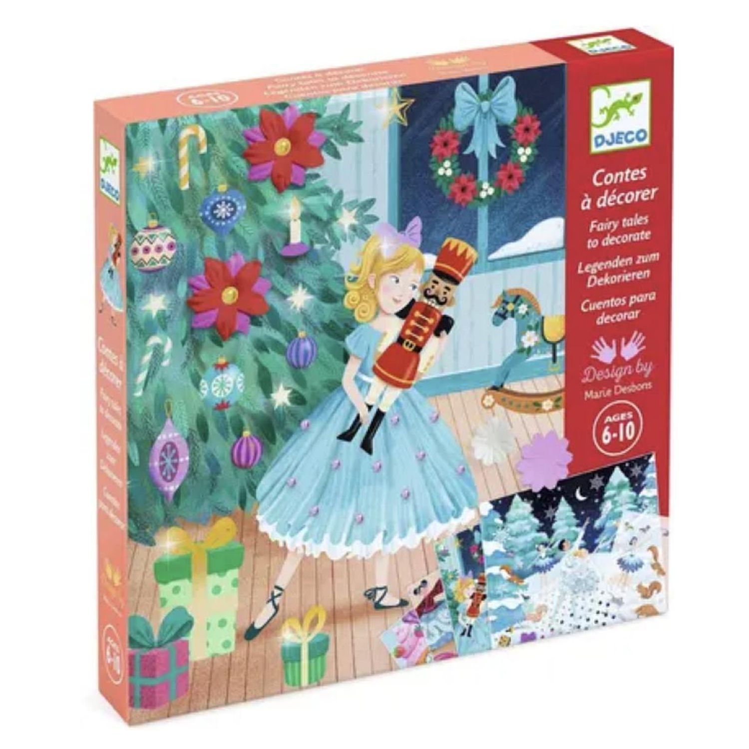 Découvrez le merveilleux coffret Conte à décorer ? Casse?Noisette de Djeco, un atelier créatif 4-en-1 pensé pour les enfants dès 6 ans. Ce kit élégant invite les jeunes à illustrer quatre scènes emblématiques du célèbre ballet de Tchaïkovski ? la veillée de Noël, la Valse des Flocons, les danses du Monde et le pas de deux de la Fée Dragée ? en utilisant décalcomanies, fleurs en papier, strass autocollants et motifs métallisés
