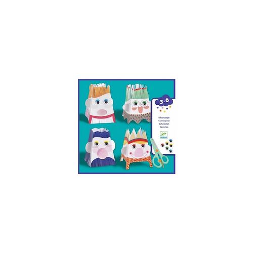 Une activité de découpage avec des ciseaux parfaitement sécurisé et des supports pour réaliser des personnages trapezes. Contient tout le nécessaire pour réaliser l'activité, 12 planches à découper représentant 4 personnages différents, 24 yeux à coller, et un livret pas à pas. Recommandé de 3 à 6 ans.