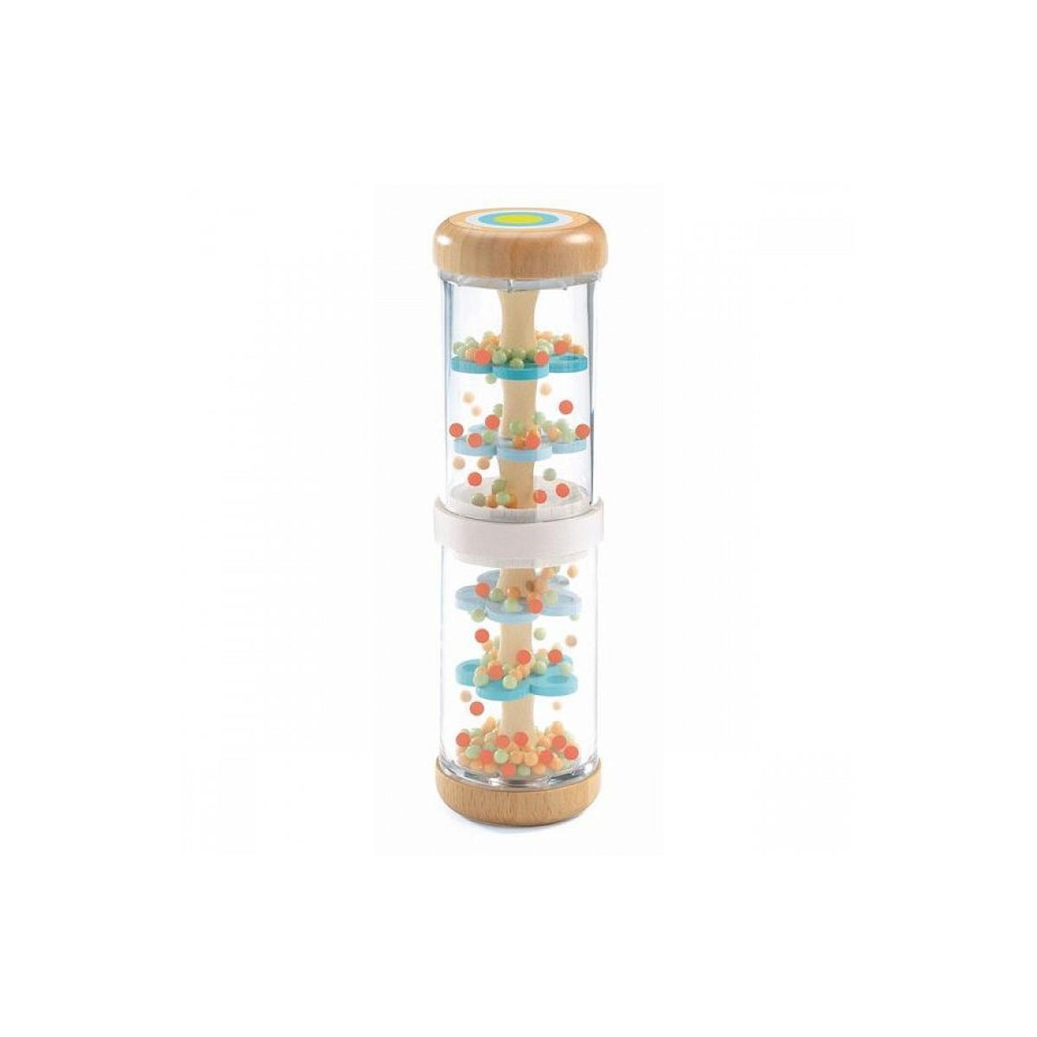 Découvrez le jouet BabyRaini de Djeco, un magnifique bâton de pluie en bois de hêtre pour éveiller votre enfant à ce nouveau son, un jouet d'éveil original pour les bébés. Après l'avoir retourné, il comtemplera les petites billes tomber et émettre un son comme de la pluie. Une jolie idée de cadeau p