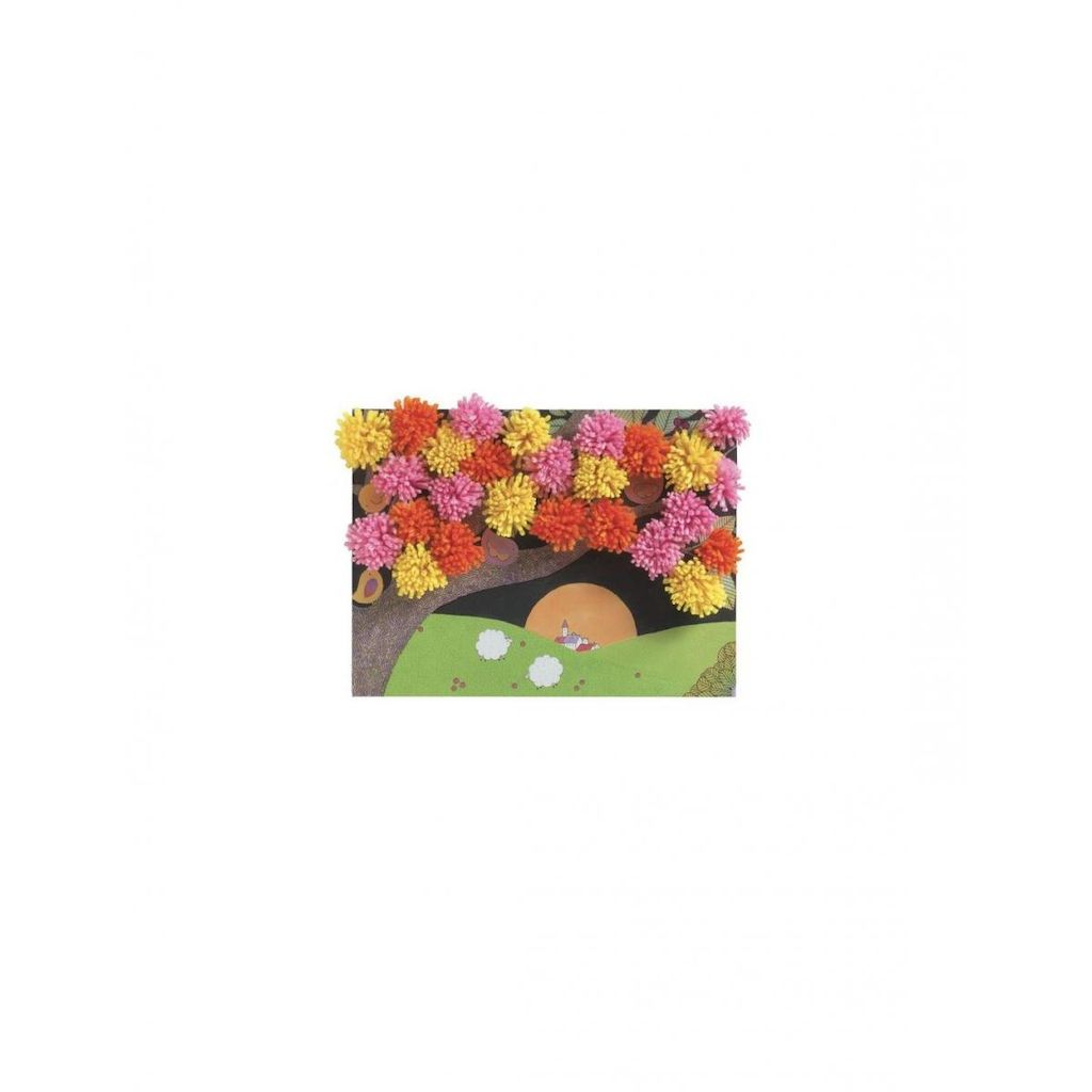 Les tableaux de pompoms Explosion de pompons de Djeco, est une activité manuelle avec des pompons colorés pour les enfants de 3 à 6 ans. Plus de 160 tubes surprise, parfait pour développer la précision et l'amusement Des petits cylindres autocollants pour compléter 4 jolies illustrations. L'enfant colle les tubes sur le tableau puis retire la partie transparentes et hop, des pompons colorés apparaissent!
