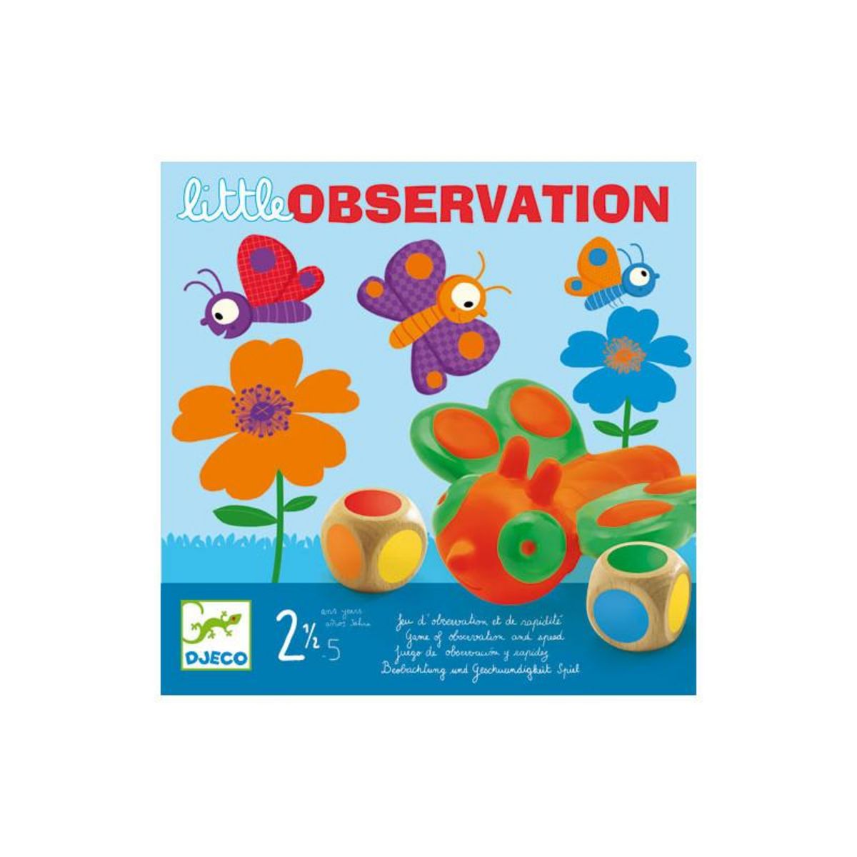 Le jeu Djeco Little Observation est un jeu d'observation et de rapidité conçu spécialement pour les enfants de 2 ans et demi à 5 ans. Dans ce jeu, des petits papillons colorés sont disposés sur la table, et les joueurs doivent être rapides pour attraper le papillon dont les couleurs correspondent à celles indiquées par les dés. Ce jeu est idéal pour développer l'observation et la reconnaissance des couleurs chez les tout-petits.