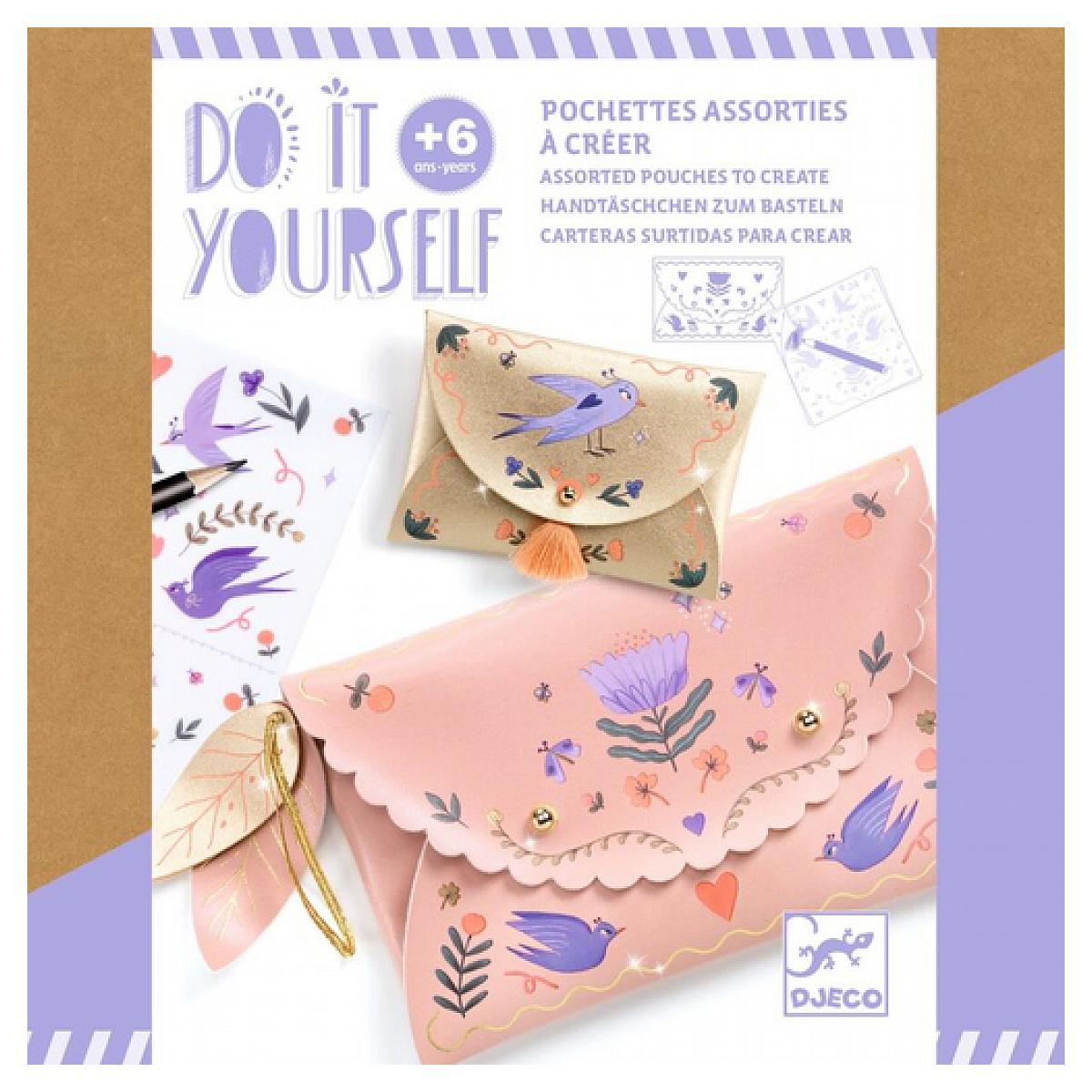 Un kit créatif pour réaliser un ensemble composé d'une pochette et d'un porte-monnaie assortis en cuir synthétique. À l'aide d'un crayon, l'enfant frotte les décalcomanies pour les transférer sur les pochettes en suivant les modèles proposés ou selon ses envies. Puis, il assemble chaque pochette l'a