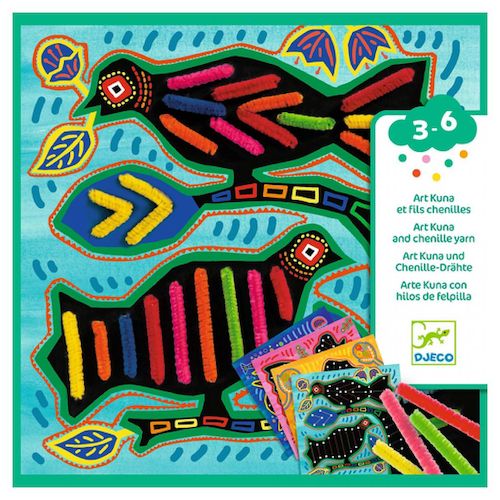 Découvrez le coffret Art Kuna et fils chenilles Tout doux de Djeco, un coffret créatif pour les enfants de 3 à 6 ans. Une activité manuelle d'enfilage avec de nombreux fils chenille permettant de réaliser des animaux colorés. Pas à pas et en suivant les indications du livret illustré, les enfants s'