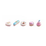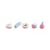 5 gâteaux en plastique agréable au toucher, vendu dans une belle boîte décorée sur le thème des princesses. Idéal pour compléter un jeu de dinette ! A partir de 3 ans.